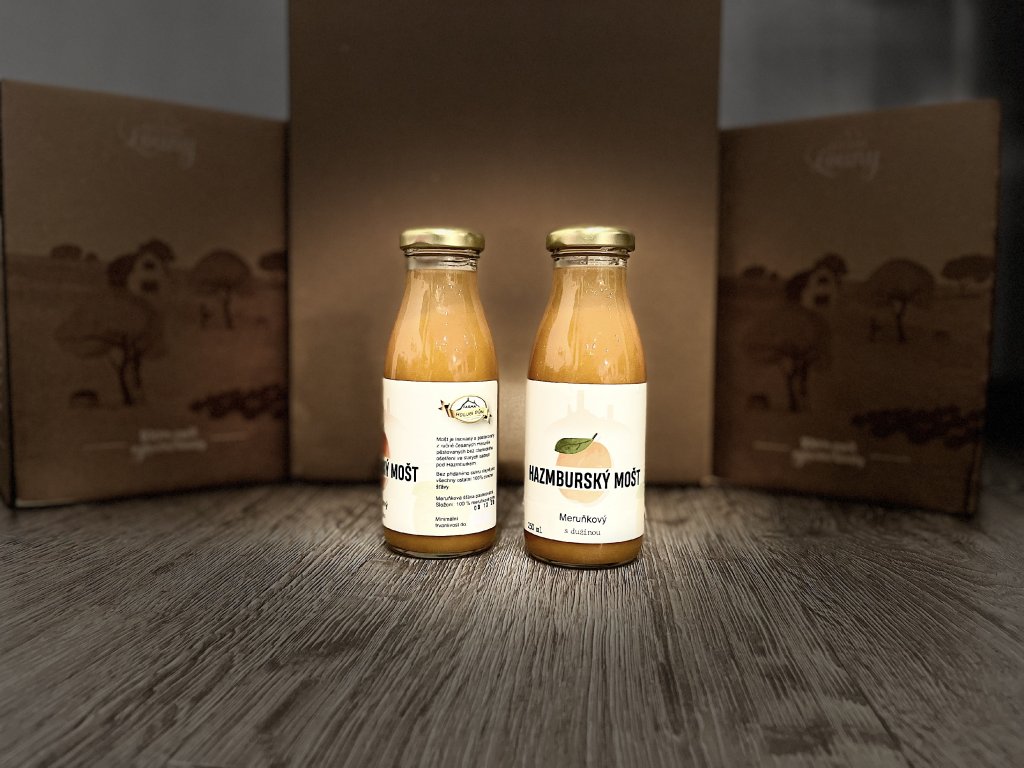 Mošt je lisovaný a pasterovaný z ručně česaných meruněk pěstovaných bez chemického ošetření ve starých sadech pod Hazmburkem.